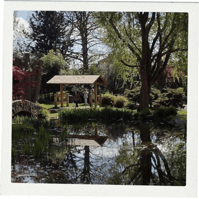 Quiet paths, ponds, and bridges make a peaceful retreat where little ones can collect natural treasures, just like our daily outdoor sessions.